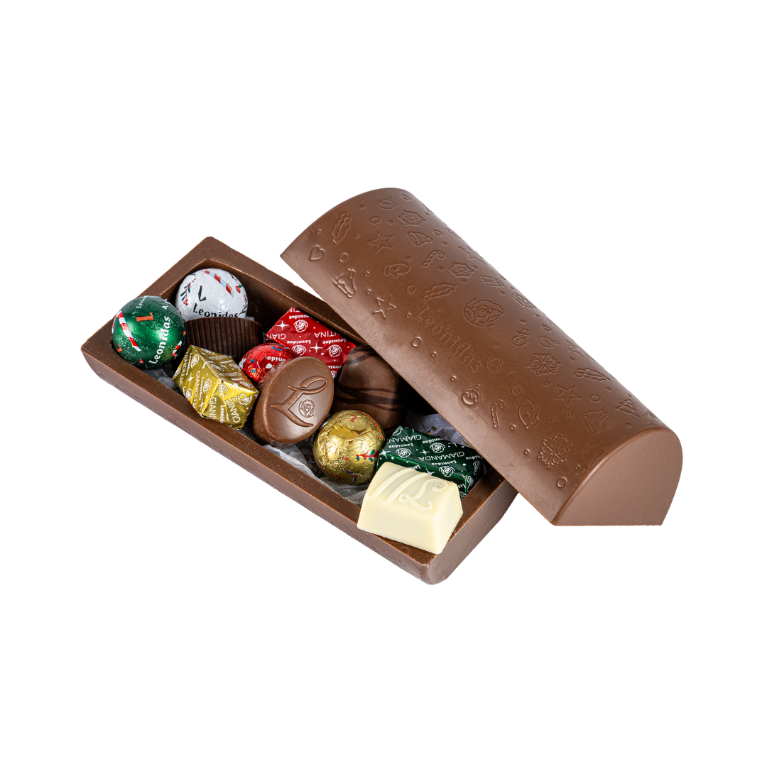 Mix Kids Noel Leonidas conține un asortiment de praline și ciocolate ambalate: globulețe, bănuți ciocolată și mini-tablete. Mix Kids Noel este un cadou dulce, de calitate, perfect de pus în ghetuțe sau sub brad, în perioada sărbătorilor. Poza este cu titlu de prezentare iar pralinele pot diferi.