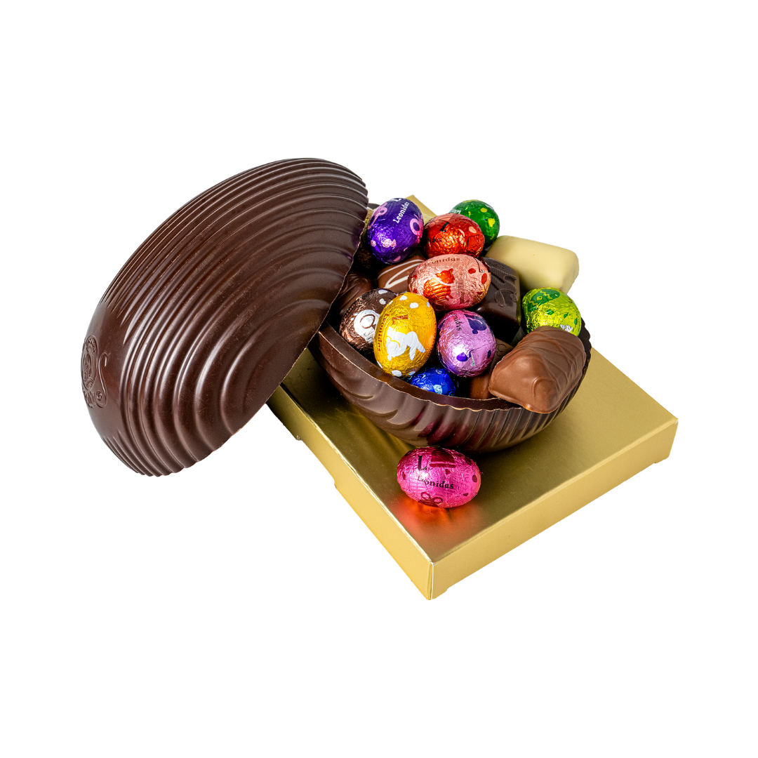 Sortiment de ouă de ciocolată ambalate individual. Ingrediente: zahăr, unt de cacao, LAPTE praf integral, masă de cacao, ALUNE DE PĂDURESMÂNTÂNĂ de LAPTE, sirop cuberdon (sirop de glucoză, glucoză, arome, coloranți: carmin, carbon vegetal), UNT anhidru, LAPTE condensat îndulcit, UNT, sirop de glucoză, zahăr invertit, umectanți (siropul de sorbitol, sorbitol), emulgatori: lecitină de SOIA, lecitină de floarea soarelui) apă, pudră de caramel cu grăsime din LAPTE (LAPTE praf degresat, zer praf (LAPTE), zahăr, grăsime anhidră din LAPTE, vanilie naturală arome), lămâie confiată, făină de GRÂUMIGDALE, arome) cafea, făină de orez, dextroză, sirop de glucoză-fructoză, pudră de cacao cu conținut scăzut de grăsimi, zahăr din trestie, glicerină vegetală, LACTOZĂ, conservant: sorbat de potasiu, pudră de cacao alcalinizată, zmeură concentrată suc de zmeură, zahăr caramelizat, acid: acid citric, sare, coloranți (sfeclă roșie, complexe de cupru de clorofile, caramel), MIGDALE amare, sare de Guerande, suc concentrat de lămâie, agenți de fermentare (pirofosfat de sodiu, bicarbonat de sodiu), amidon modificat, invertaza , extract de vanilie, dioxid de carbon, agenți de îngroșare (agar-agar, pectină), concentrat vegetal (morcov, hibiscus), pectină, extract de curcumină. Cu ciocolată cu LAPTE (min. 30% substanță uscată de cacao, min. 22% substanță uscată de LAPTE), ciocolată neagră (min. 54% substanță uscată de cacao), ciocolată albă (min. 25% substanță uscată de cacao, min. 22% LAPTE uscat solide), ciocolată albă cu caramel (min. 26% substanță uscată de cacao, min. 27% substanță uscată din LAPTE). Poate contine urme de nuci (fistic, nuci), gluten (orz) si ouă. Se păstrează la loc uscat și răcoros, la o temperatură între 15⁰C – 18⁰C. Produs în Belgia.