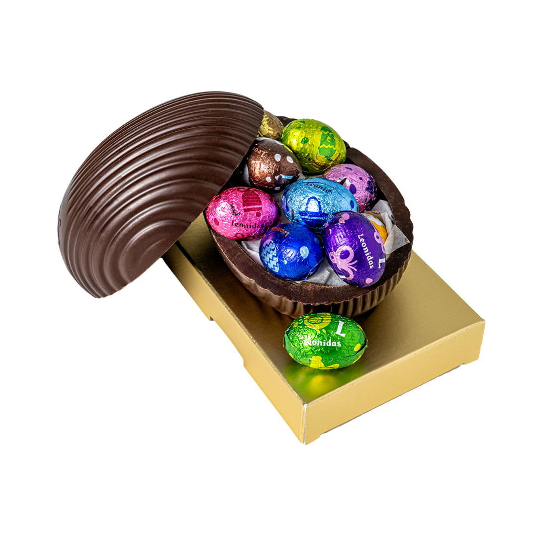 Mini ouă Paște Leonidas 250g umplute cu diverse creme, din ciocolată cu lapte, neagră și albă. Mini Ouăle Leonidas de Paște sunt perfecte pentru a fi oferite cadou sau pentru a pregăti o vânătoare de ouă (egg hunt) alături de familie. Pungă Leonidas cadou și hârtie mătase incluse. Poza este cu titlu de prezentare iar mini ouăle pot diferi.
