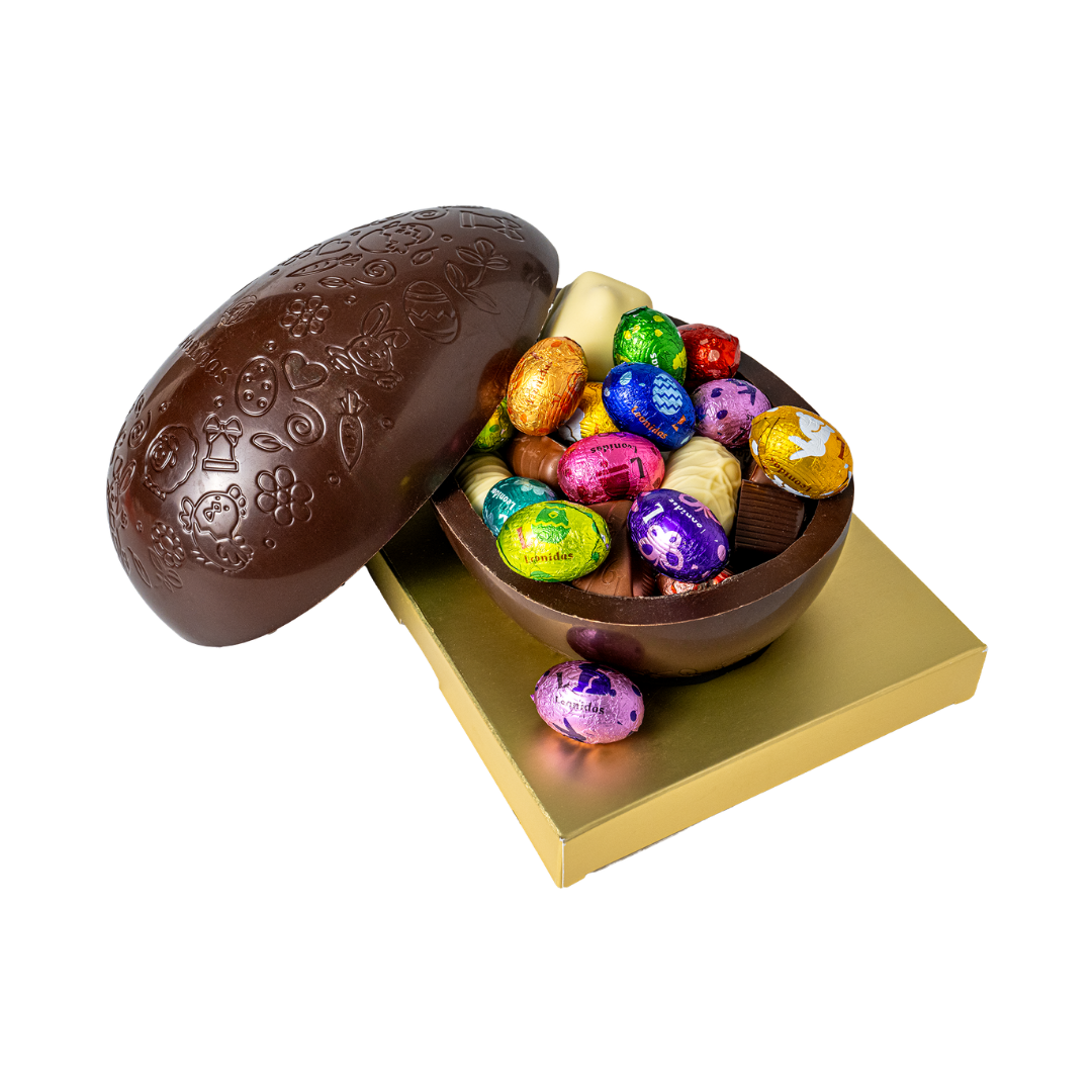 Sortiment de ouă de ciocolată ambalate individual. Ingrediente: zahăr, unt de cacao, LAPTE praf integral, masă de cacao, ALUNE DE PĂDURESMÂNTÂNĂ de LAPTE, sirop cuberdon (sirop de glucoză, glucoză, arome, coloranți: carmin, carbon vegetal), UNT anhidru, LAPTE condensat îndulcit, UNT, sirop de glucoză, zahăr invertit, umectanți (siropul de sorbitol, sorbitol), emulgatori: lecitină de SOIA, lecitină de floarea soarelui) apă, pudră de caramel cu grăsime din LAPTE (LAPTE praf degresat, zer praf (LAPTE), zahăr, grăsime anhidră din LAPTE, vanilie naturală arome), lămâie confiată, făină de GRÂUMIGDALE, arome) cafea, făină de orez, dextroză, sirop de glucoză-fructoză, pudră de cacao cu conținut scăzut de grăsimi, zahăr din trestie, glicerină vegetală, LACTOZĂ, conservant: sorbat de potasiu, pudră de cacao alcalinizată, zmeură concentrată suc de zmeură, zahăr caramelizat, acid: acid citric, sare, coloranți (sfeclă roșie, complexe de cupru de clorofile, caramel), MIGDALE amare, sare de Guerande, suc concentrat de lămâie, agenți de fermentare (pirofosfat de sodiu, bicarbonat de sodiu), amidon modificat, invertaza , extract de vanilie, dioxid de carbon, agenți de îngroșare (agar-agar, pectină), concentrat vegetal (morcov, hibiscus), pectină, extract de curcumină. Cu ciocolată cu LAPTE (min. 30% substanță uscată de cacao, min. 22% substanță uscată de LAPTE), ciocolată neagră (min. 54% substanță uscată de cacao), ciocolată albă (min. 25% substanță uscată de cacao, min. 22% LAPTE uscat solide), ciocolată albă cu caramel (min. 26% substanță uscată de cacao, min. 27% substanță uscată din LAPTE). Poate contine urme de nuci (fistic, nuci), gluten (orz) si ouă. Se păstrează la loc uscat și răcoros, la o temperatură între 15⁰C – 18⁰C. Produs în Belgia.