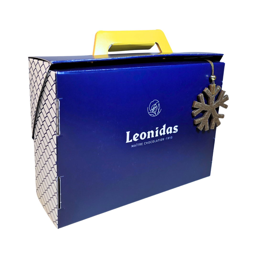 Premium Noel Leonidas este o cutiealbă elegantă, tematică, ce conține 49 de praline asortate. Premium Noel este o cutie perfectă pentru a fi pusă sub brad, în perioada sărbătorilor.  Poza este cu titlu de prezentare iar pralinele, design-ul cutiei și panglica pot diferi. Pungă cadou și hârtie mătase incluse.